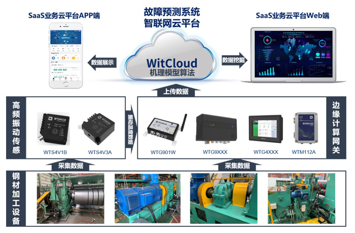 Witium旋轉(zhuǎn)設(shè)備故障預(yù)測(cè)系統(tǒng)解決方案通過人工智能與物聯(lián)網(wǎng)融合的技術(shù),把設(shè)備數(shù)據(jù)匯集到物聯(lián)網(wǎng)云平臺(tái),解決鋼材加工行業(yè)在生產(chǎn)過程中的幾大痛點(diǎn):