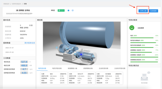 1、【分析工具】下圖為某水泥產(chǎn)線的回轉(zhuǎn)窯設備。以該設備為例,對于有算法分析基礎的工程師,可以點擊分析工具,查看設備的實時特征數(shù)據(jù)及進行頻譜分析。