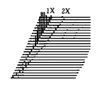 以瀑布圖為例, 我們可以通過(guò)分析它獲得變速過(guò)程中系統(tǒng)振動(dòng)所包含的故障信息。它不僅能反映部分穩(wěn)態(tài)振動(dòng)信息, 而且也能反映系統(tǒng)變速過(guò)程中的瞬態(tài)振動(dòng)信息。它以一幅直觀(guān)圖的形式全面地反映機(jī)器在不同轉(zhuǎn)速下的同頻、倍頻、分頻分量。