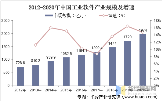 2013年以來,制造業(yè)進(jìn)入了新舊動能加速轉(zhuǎn)換的關(guān)鍵階段,全球工業(yè)軟件產(chǎn)業(yè)穩(wěn)步增長,中國工業(yè)軟件市場更呈現(xiàn)出快速發(fā)展的態(tài)勢。據(jù)統(tǒng)計,截至2020年我國工業(yè)軟件產(chǎn)業(yè)規(guī)模達(dá)到1974億元,同比增長14.77